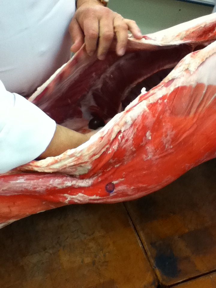 So on our first two days, we went over beef fabrication. We cut up beef round, shank, loins into tenderloins (filet mignon anyone?), sirloins, striped loins, and everything in between. Photo Bomb!